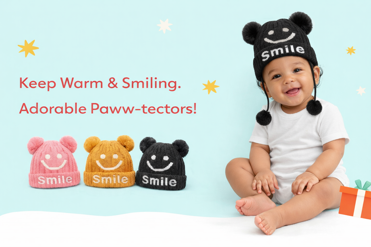 Swakum offers a wide range of winter wear and accessories for babies and kids, including caps & hats, socks, boots & footwear, baby warmers, earmuffs, gloves, and more — all designed to keep little ones warm and comfortable.