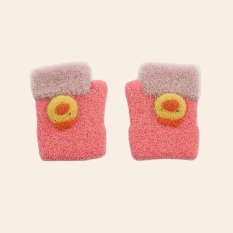 Kids Winter Soft Knit Gloves – Cartoon Style (Peach Pink & Soft Grey)