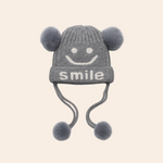 Keep your little one cozy and cute with our Grey Smiley Pom-Pom Hat! Crafted from soft and warm Sanil yarn, this adorable baby cap features two fluffy pom-poms on top and two more at the end of tie strings — perfect for adding a playful touch to any winter outfit. The ribbed knit design ensures a comfortable, snug fit that keeps your child warm during chilly days.